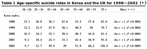 국민의 정부 시절의 연령별 자살율