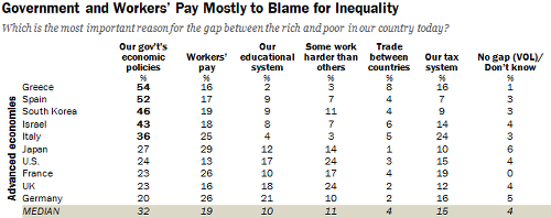 다른 나라와 마찬가지로 한국에서도 불평등을 큰 문제로 인식하고, 그 주 원인은 정부 정책이라고 생각.